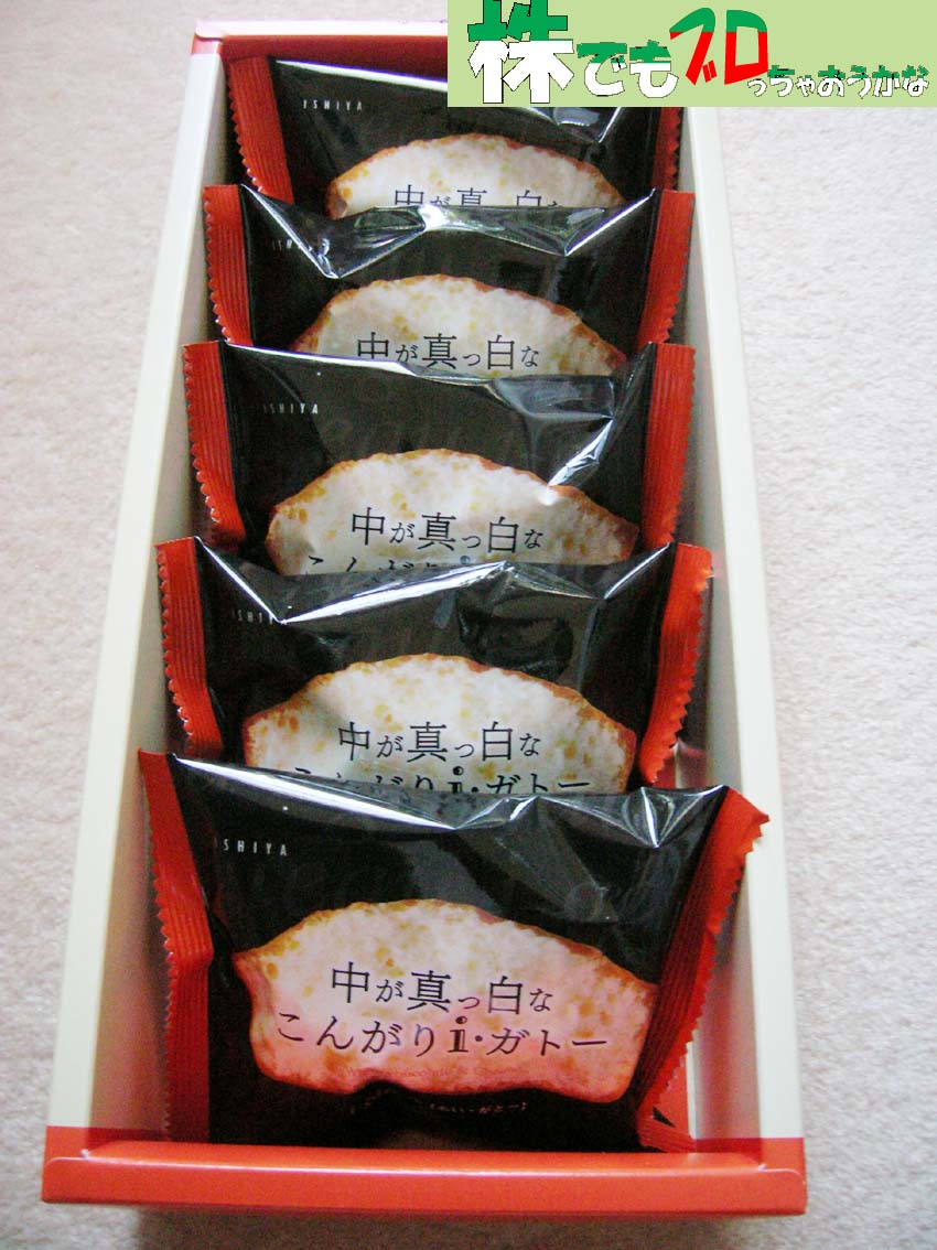 家で開けると石屋製菓の焼洋菓子「中が真っ白なこんがりiガトー」でした。