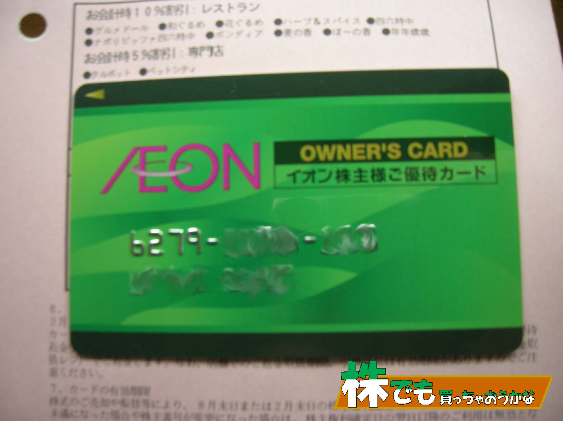 10月24日イオンからイオン株主優待カードが2枚(本人用、家族用)届きました。