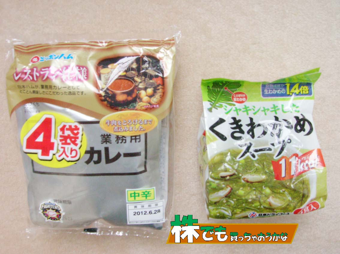 おみやげとして、業務用カレーとくきわかめスープをもらいました。