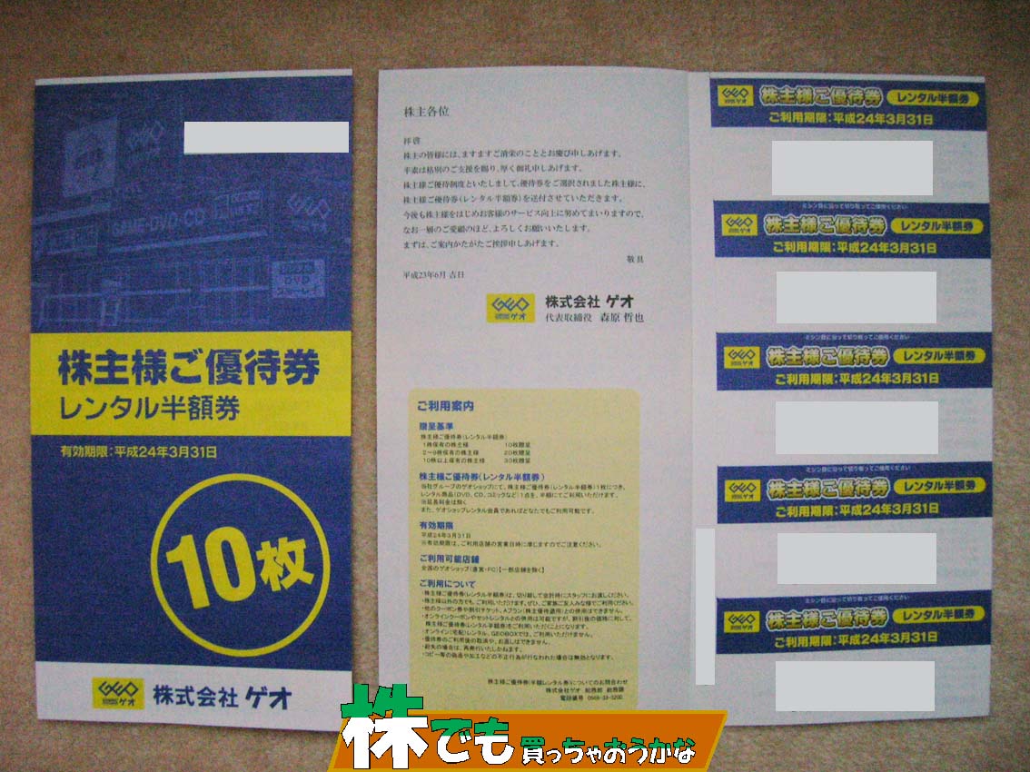ゲオから株主優待が届きました。レンタルの半額券です。