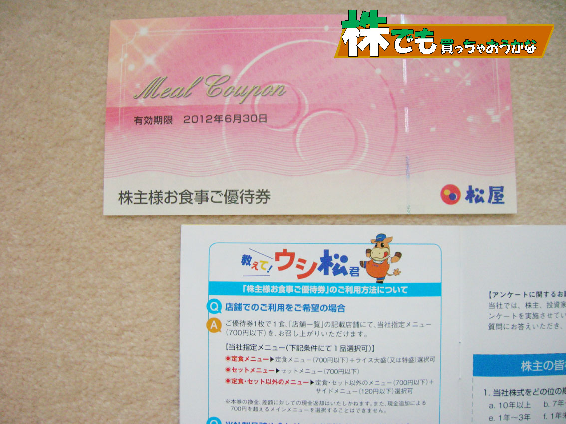 6月27日、松屋フーズから株主優待が届きました。