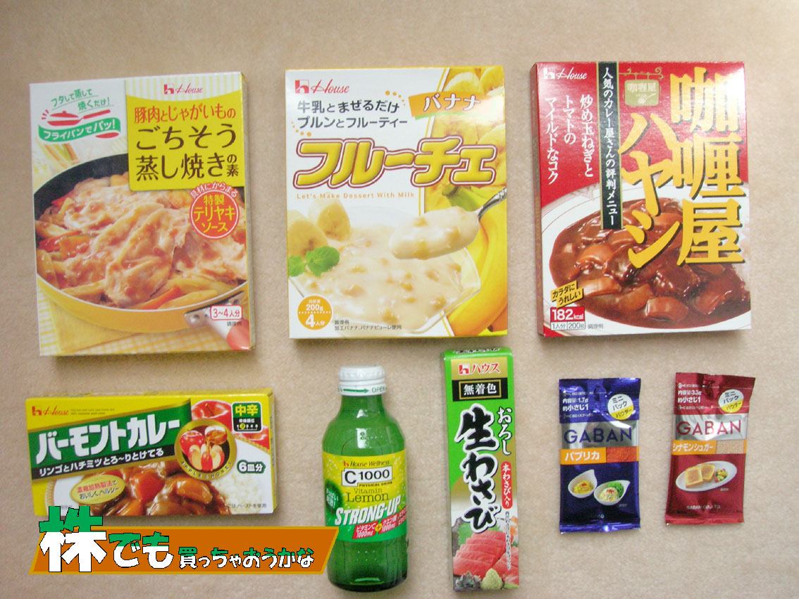 ハウス食品の代表商品のバーモントカレーとフルーチェをはじめ、自社製品です。