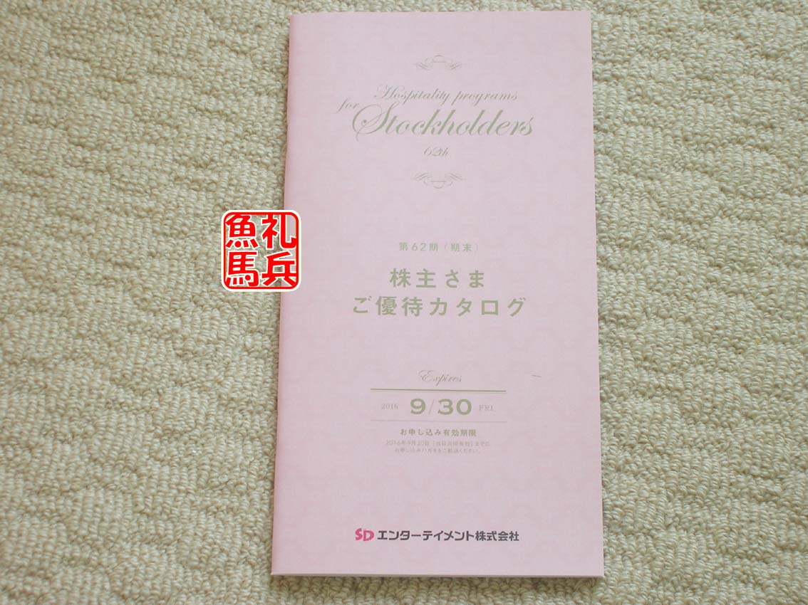7月1日、SDエンターテイメントから株主優待カタログが到着しました。