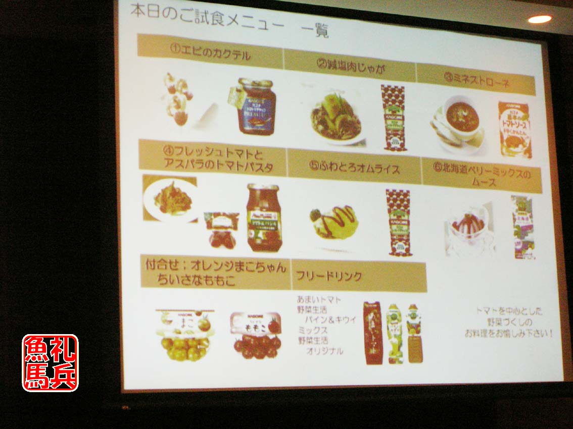 まずは、試食のメニューと使われたカゴメ製品の説明です。