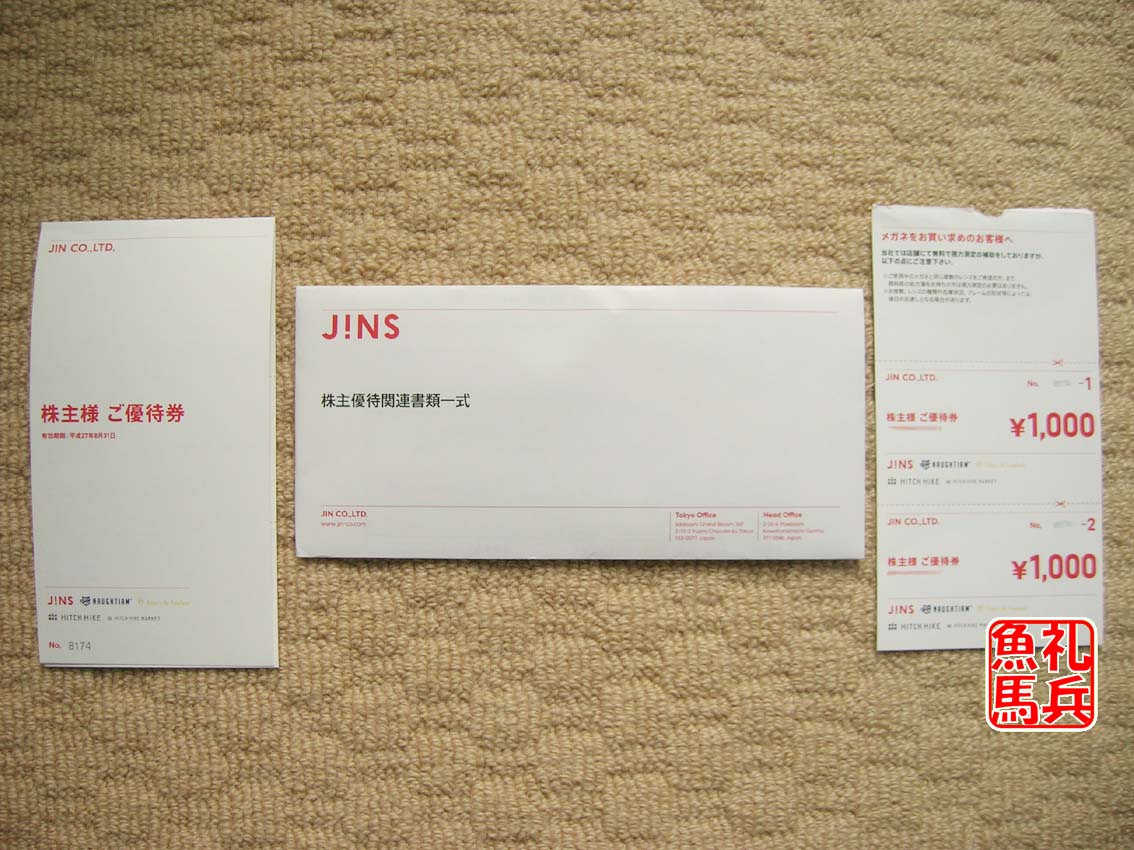 11月29日、JINの株主優待が届きました。