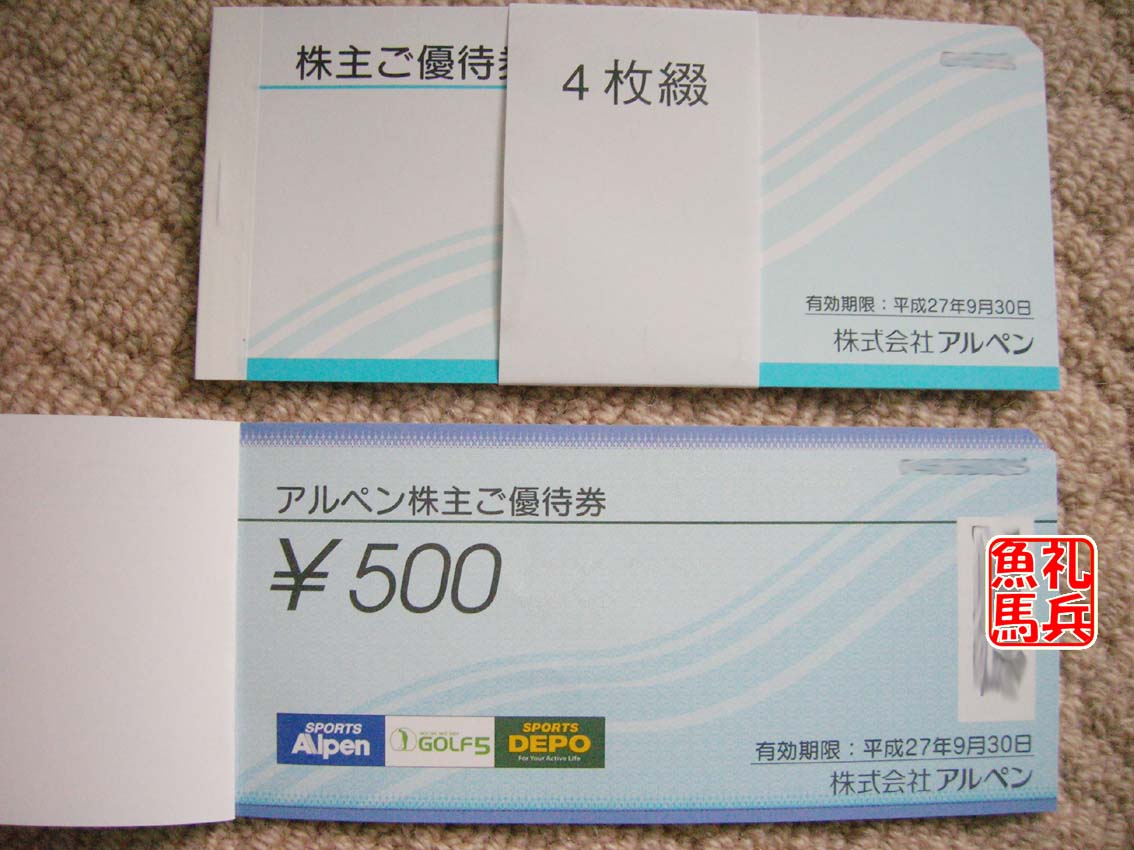 アルペンやデポなどグループ店舗で使える株主優待券です。