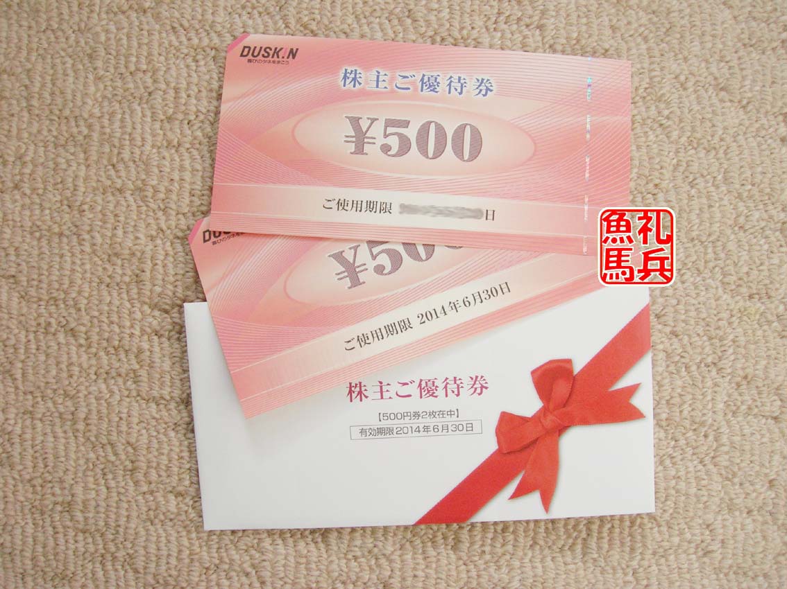 ダスキンのサービスやミスタードーナツで使える優待券です。
