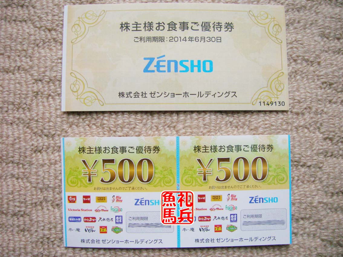 ゼンショーグループ店舗で使える株主優待券です。