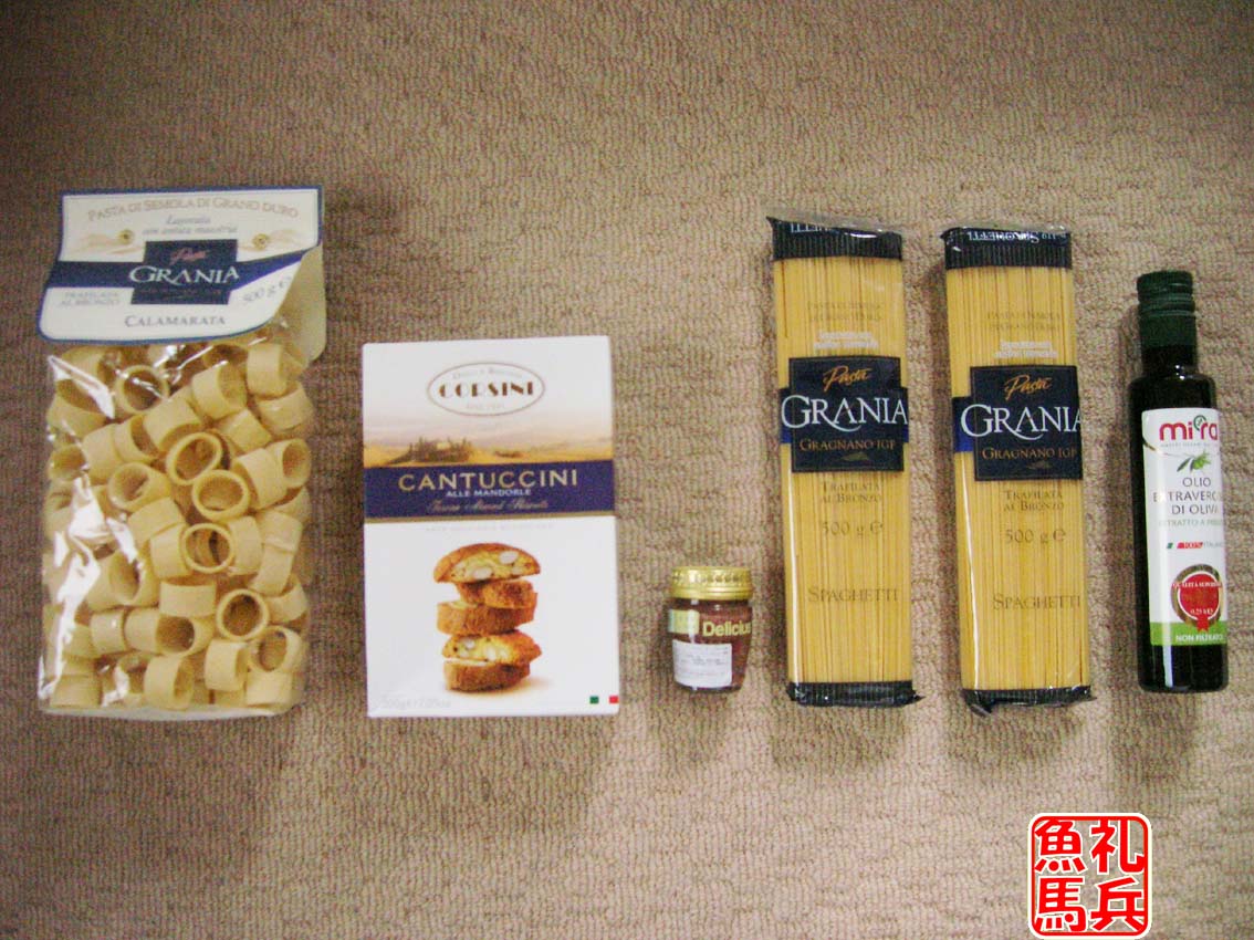 パスタやアンチョビなどイタリアン料理の素材詰合せです。