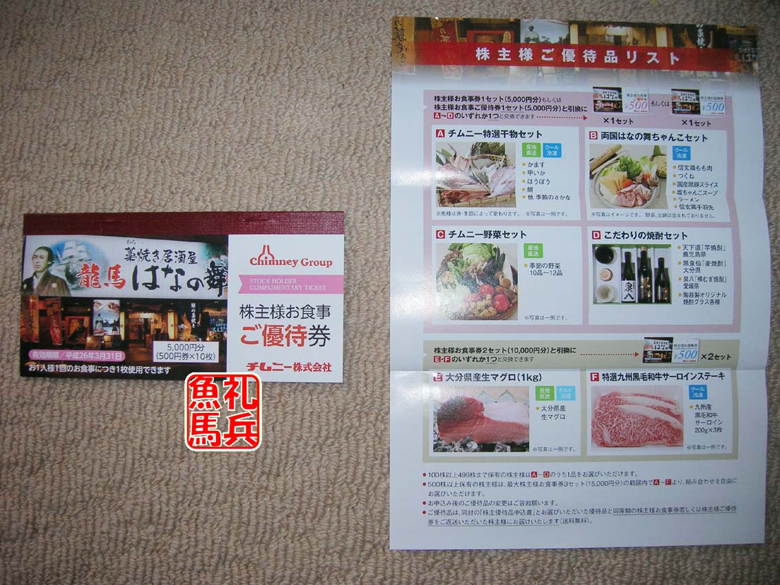 9月2日、チムニーから株主優待が届きました。
