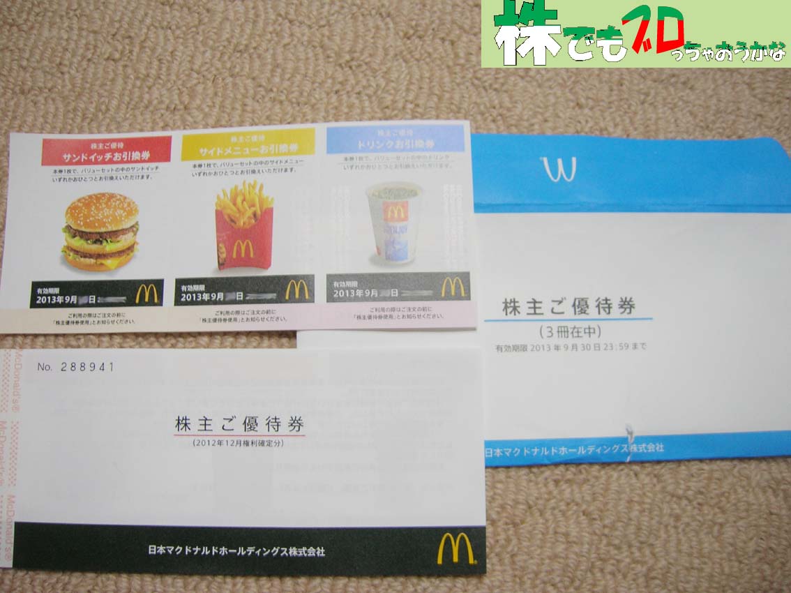 3月21日、マクドナルドホールディングスから株主優待が届きました。
